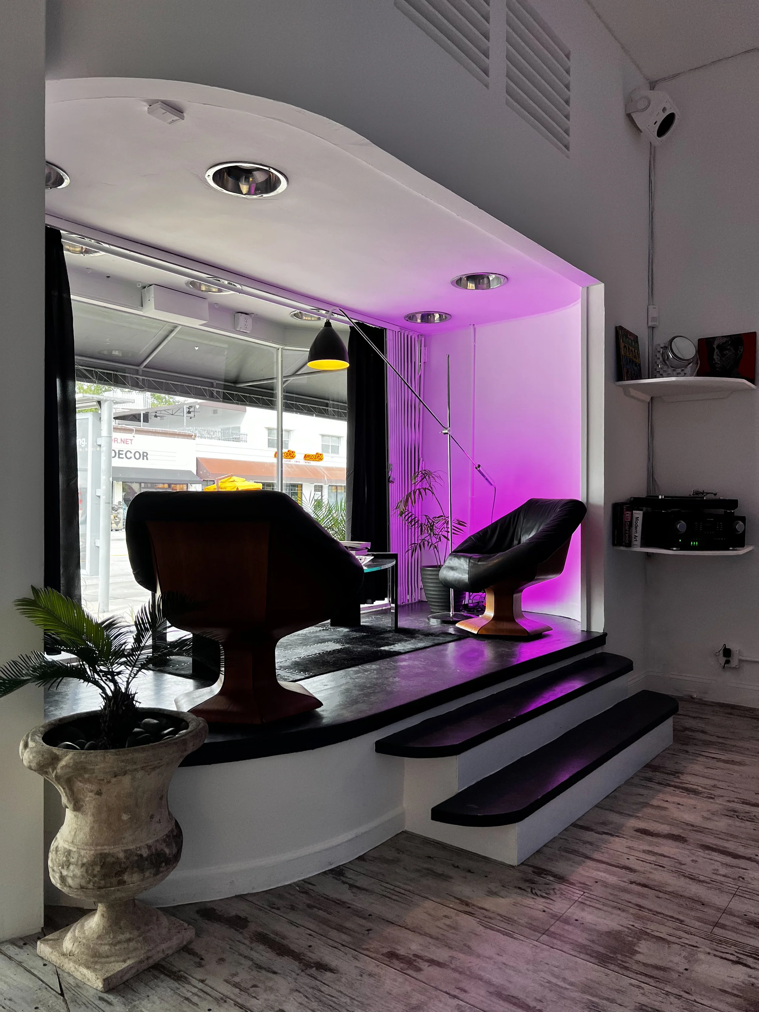 Located in the heart of MiMo District, Fly Studio is an 1,800 square foot storefront studio equipped with a 14’ x 14’ cove cyclorama wall with a west facing window overlooking Biscayne Boulevard.